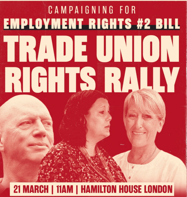 Join the Campaign for Trade Union Freedom at our rally for trade union rights with a Employment Rights #2 Billon 21st March in London